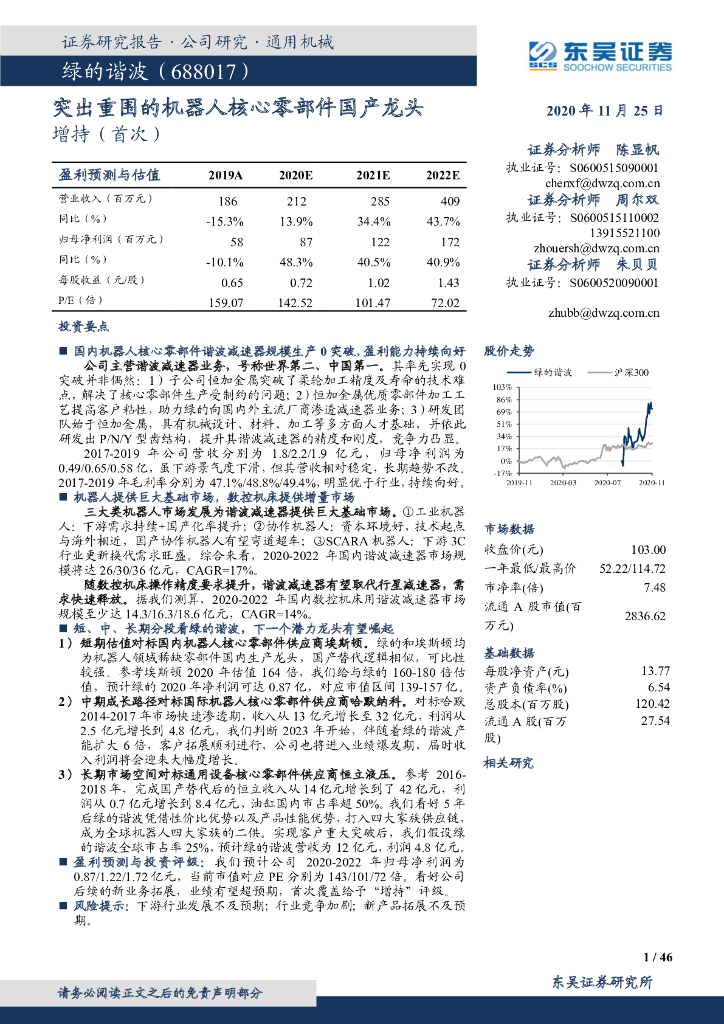 东吴证券:绿的谐波(688017)-突出重围的机器人核心零部件国产龙头.pdf