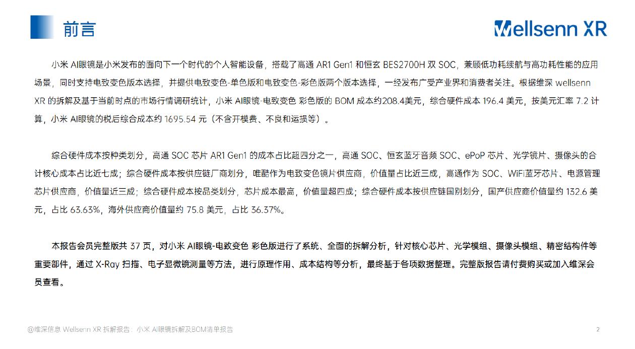 维深Wellsenn XR:2025年AI眼镜拆解及BOM成本报告:小米Al眼镜-电致变色 彩色版(摘要版).pdf