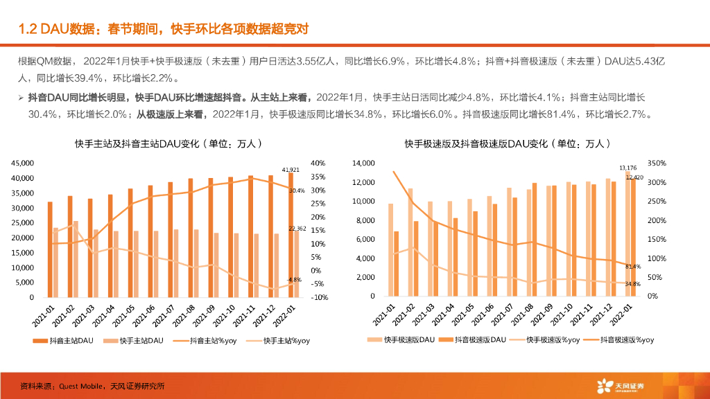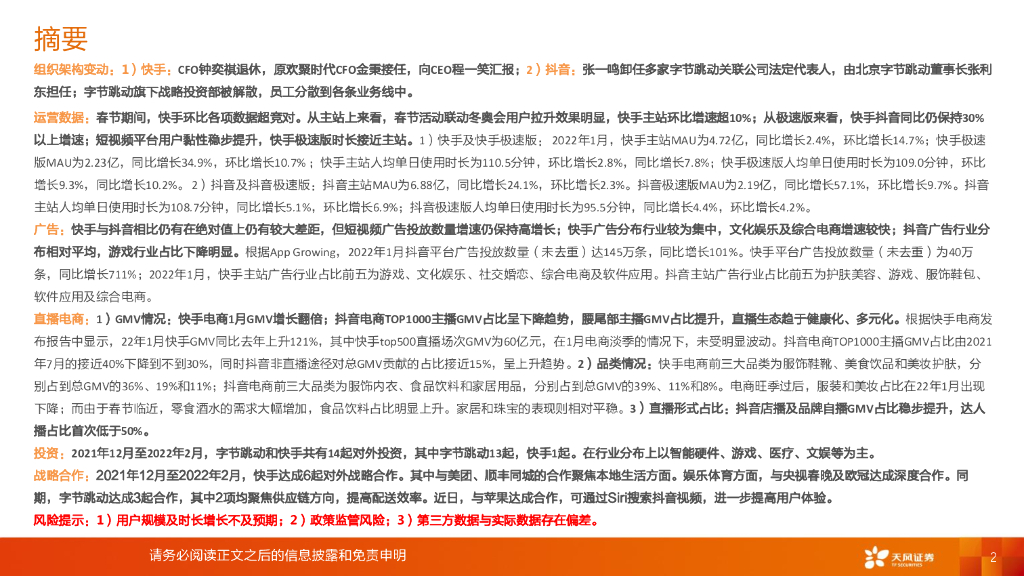 天风证券:1月短视频月度数据跟踪:快手各项用户数据环比表现良好,抖音品牌自播及店播比例稳步提升.pdf