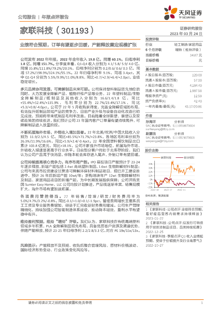天风证券:家联科技(301193)-业绩符合预期,订单有望逐步回暖,产能释放奠定规模扩张.pdf