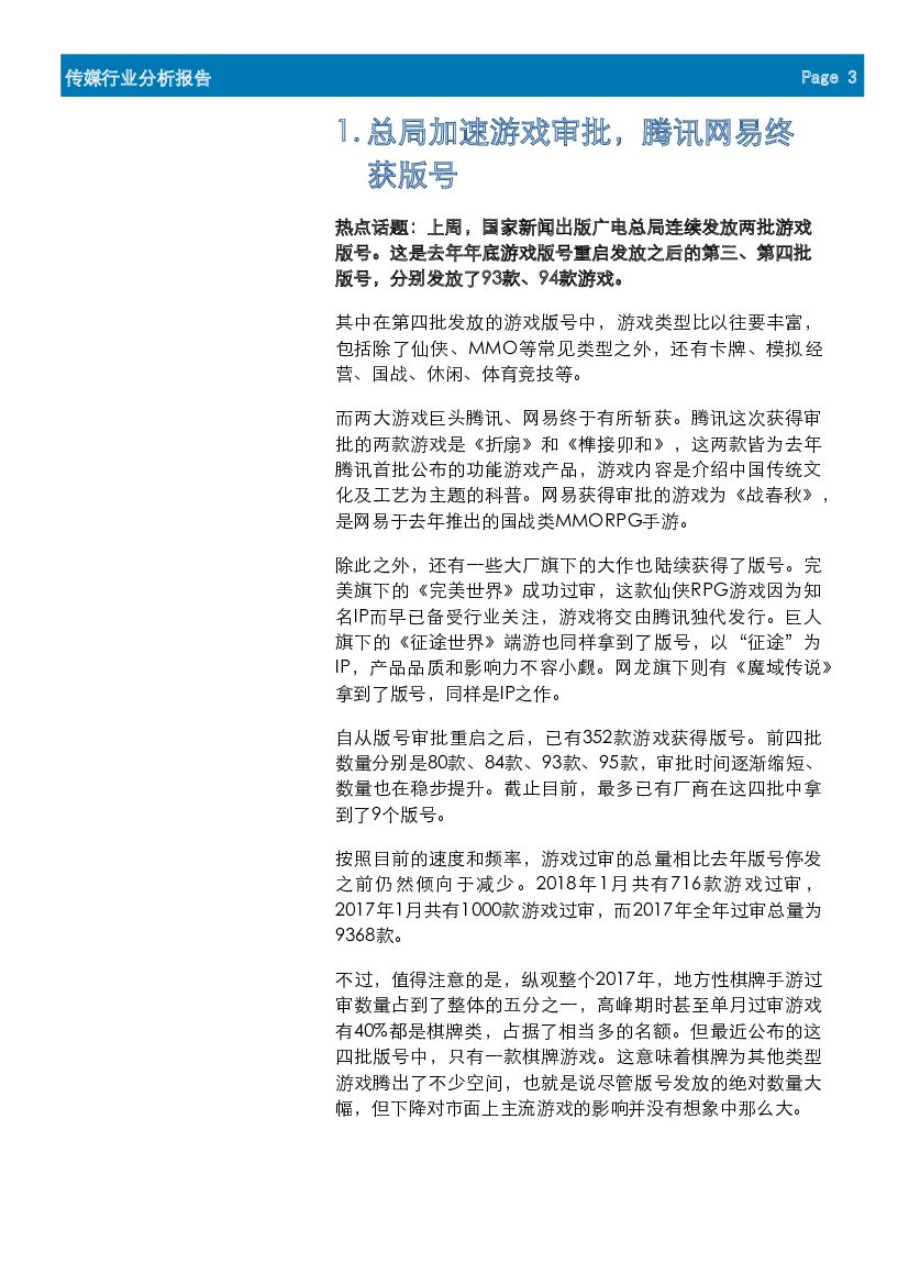 首创证券:文化传媒行业周报:总局加速游戏审批,腾讯网易终获版号.pdf