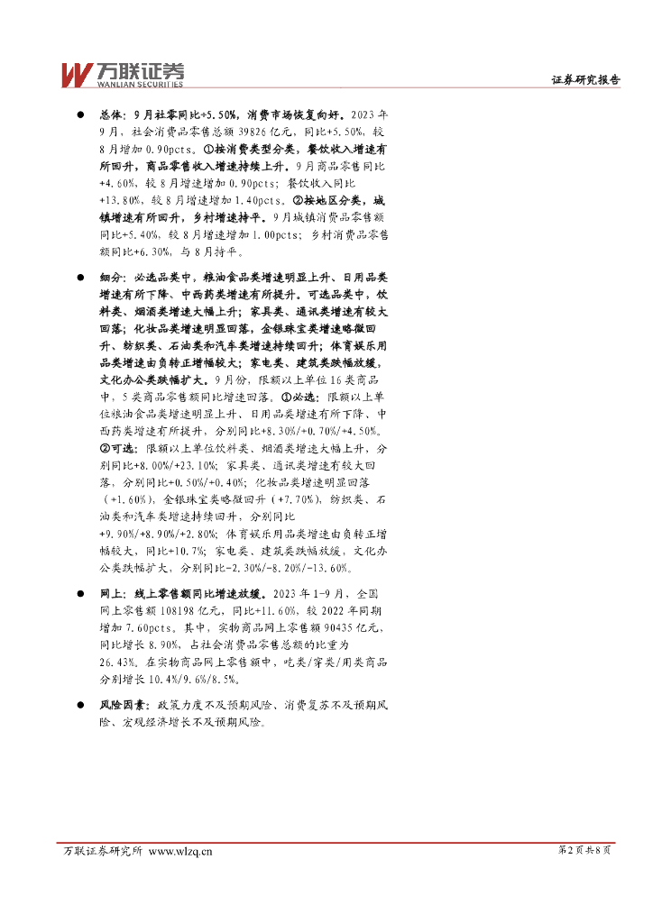 万联证券:9月社零数据跟踪报告:9月社零同比增速持续提升,消费市场恢复向好.pdf