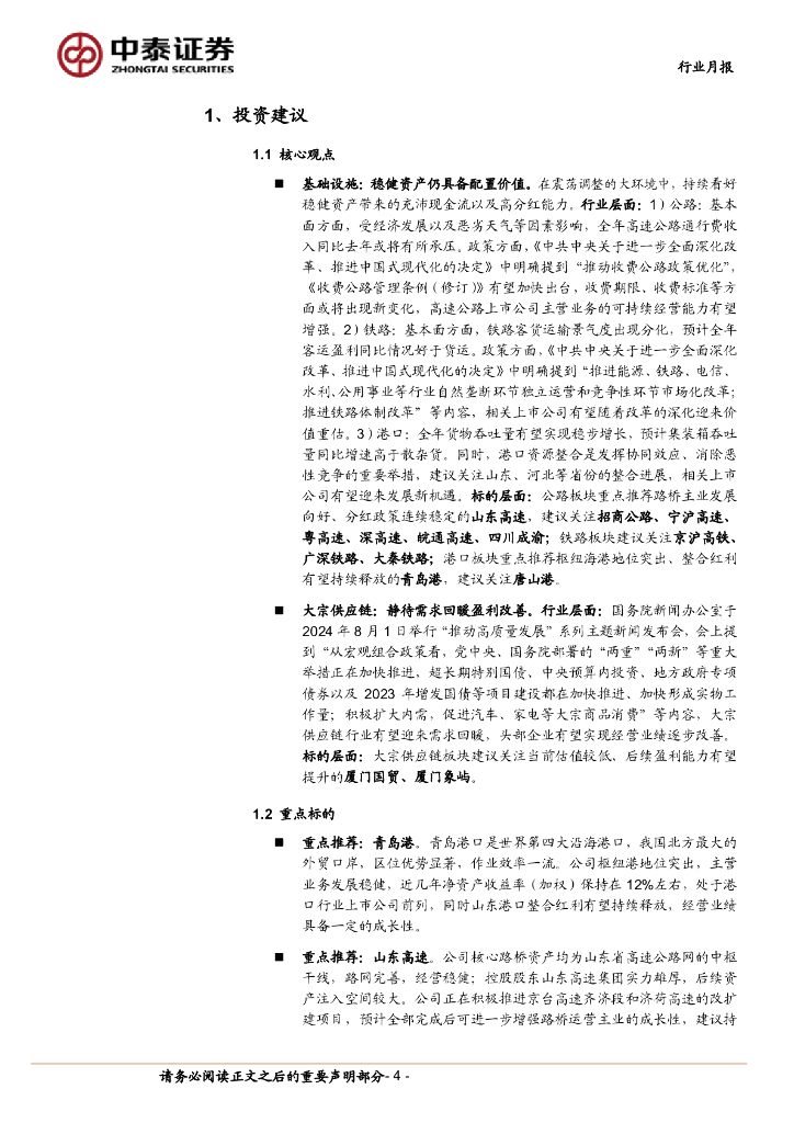中泰证券:公铁港链9月投资策略:红利资产依然是资金配置方向.pdf