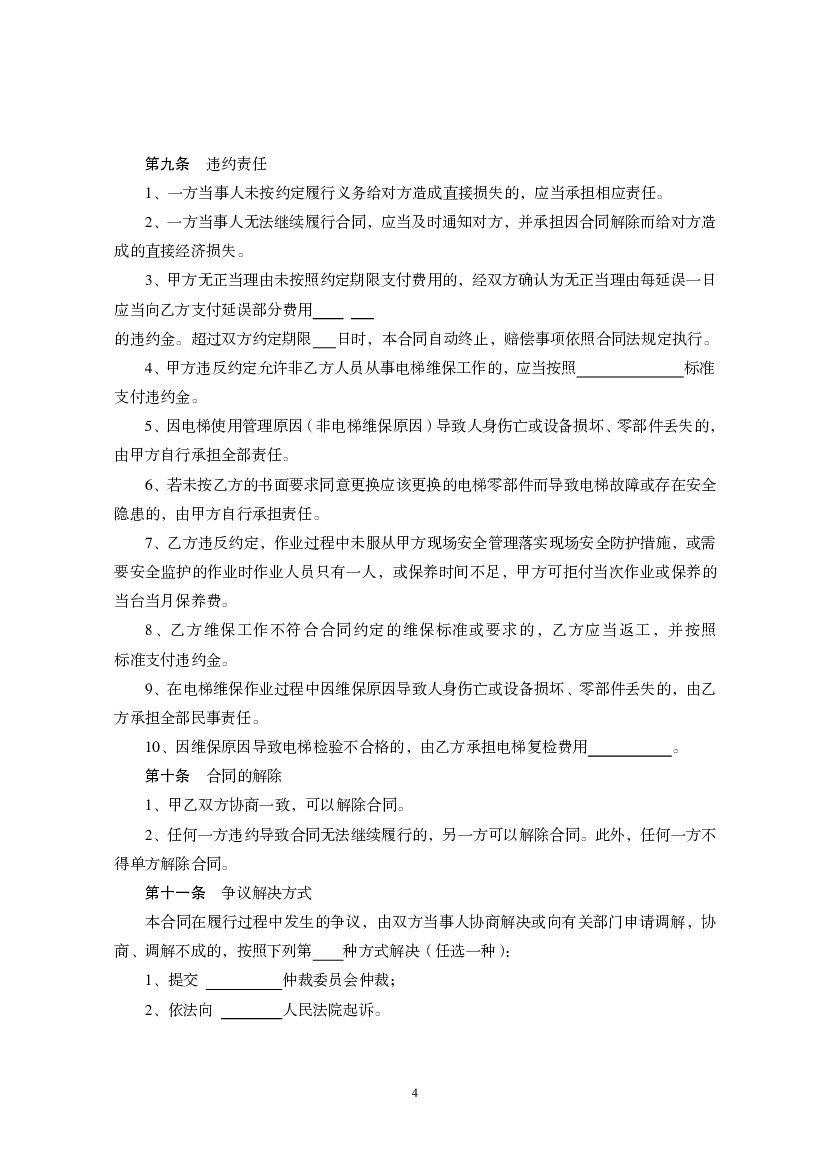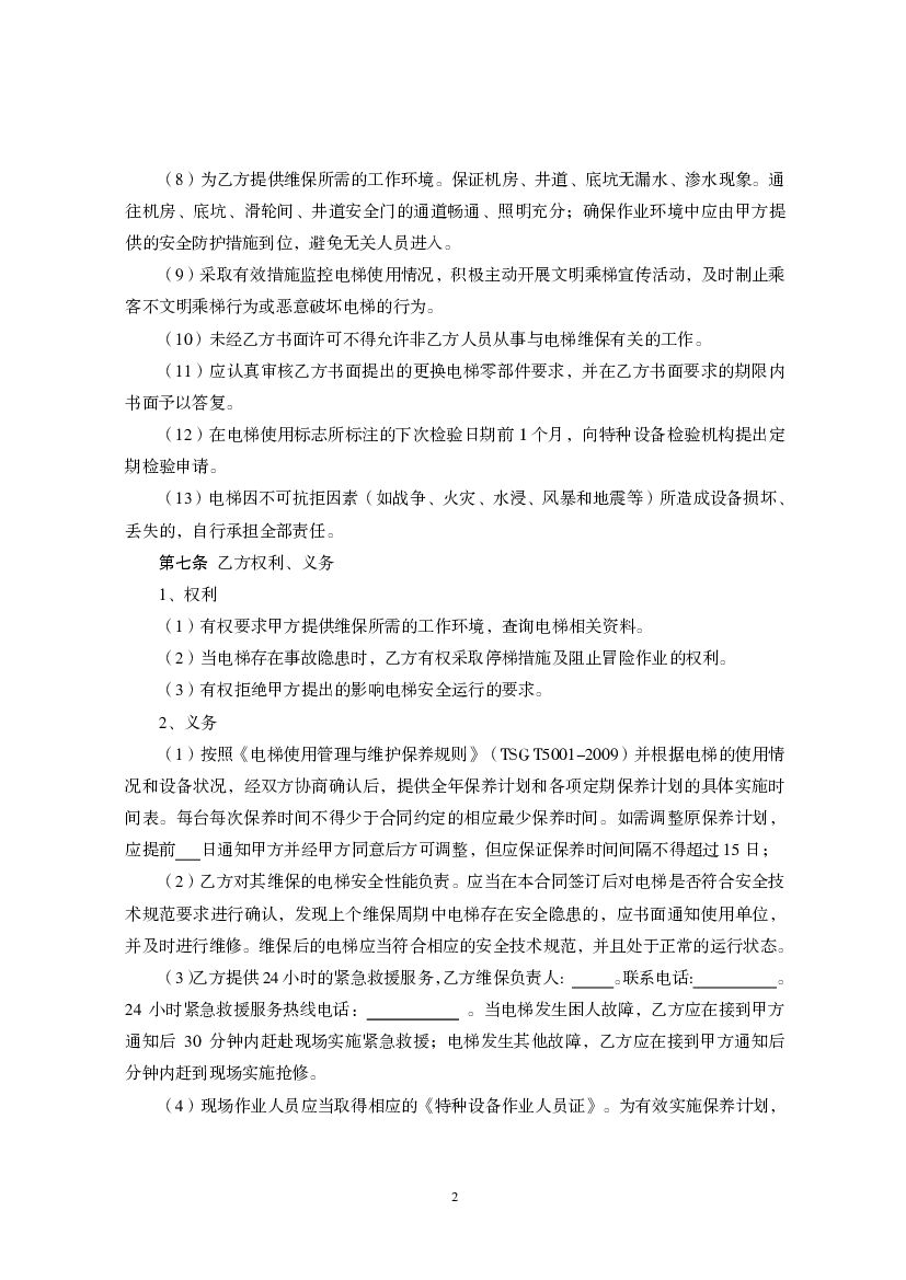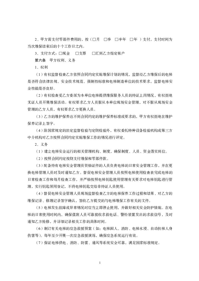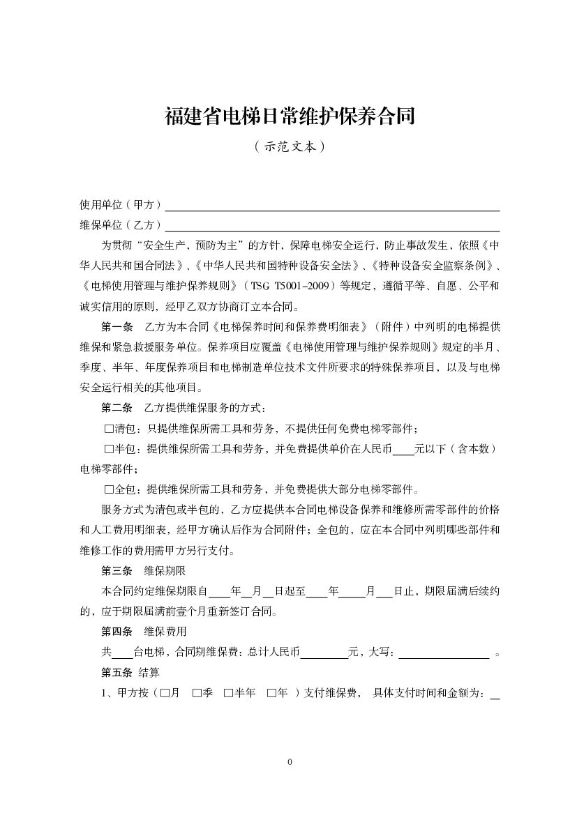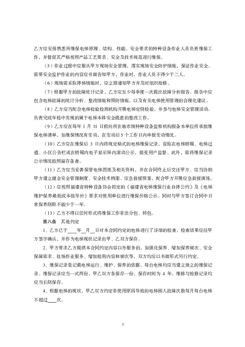 福建省电梯日常维护保养合同(示范文本).pdf
