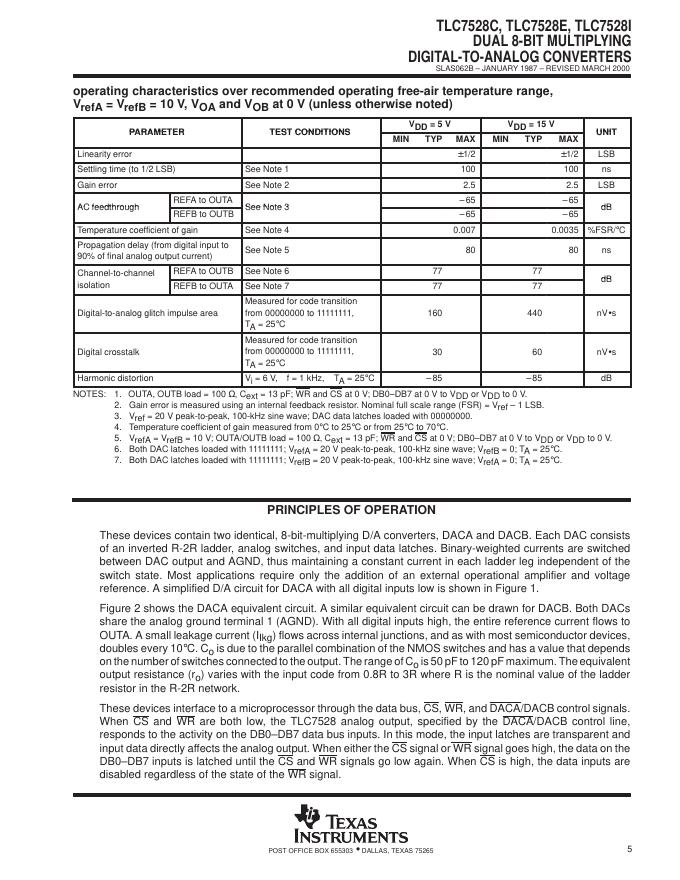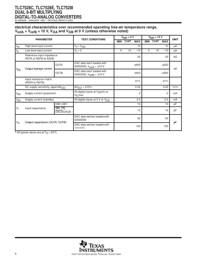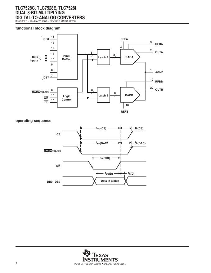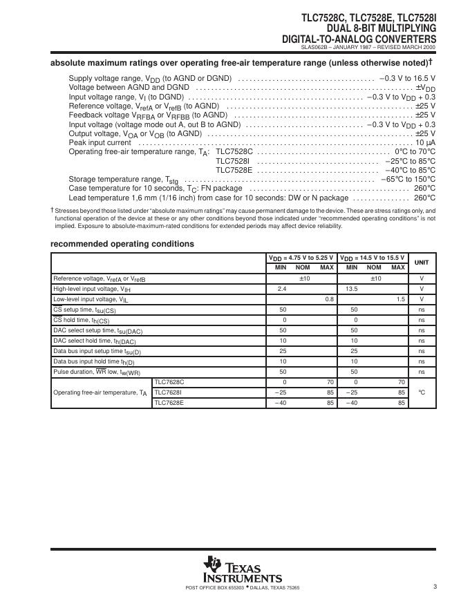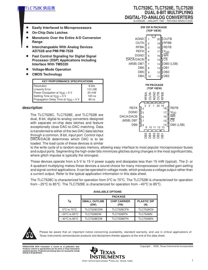 TEXAS INSTRUMENTS TLC7528C, TLC7528E, TLC7528I DUAL 8-BIT MULTIPLYING DIGITAL-TO-ANALOG CONVERTERS 数据手册.pdf