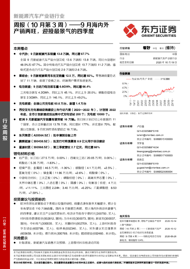 东方证券:新能源汽车产业链行业周报(10月第3周):9月海内外产销两旺,迎接最景气的四季度.pdf