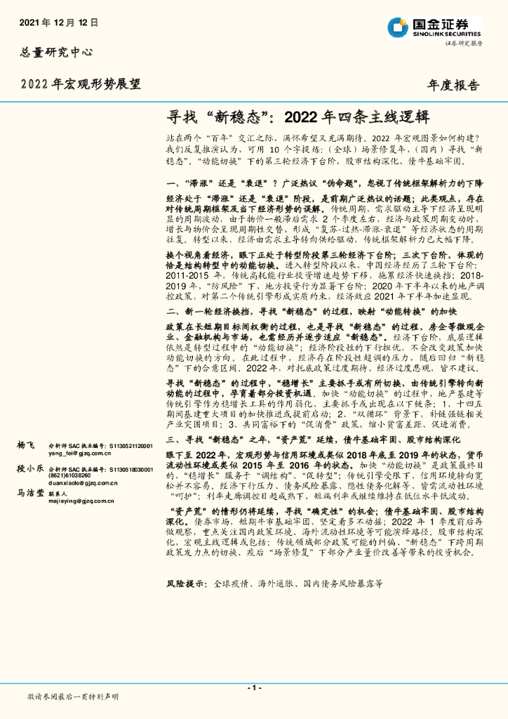 国金证券:2022年宏观形势展望:寻找“新稳态”:2022年四条主线逻辑.pdf