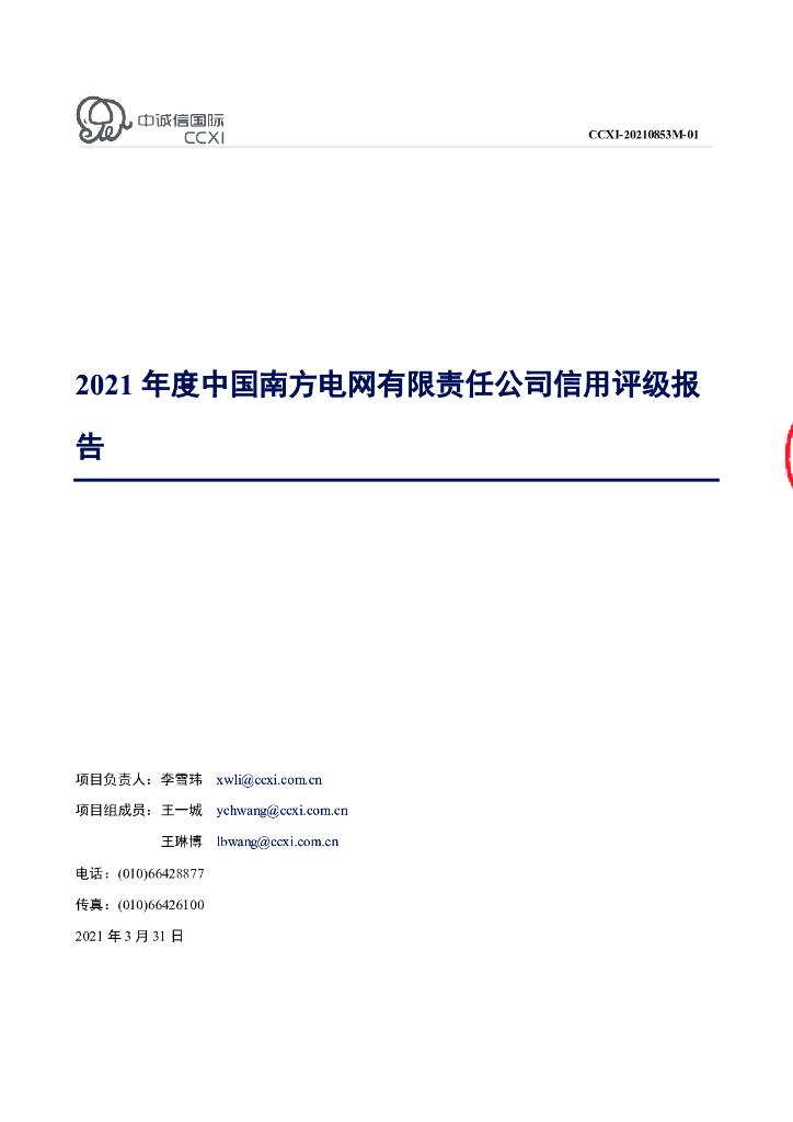 中诚信:2021年度中国南方电网有限责任公司信用评级报告.pdf