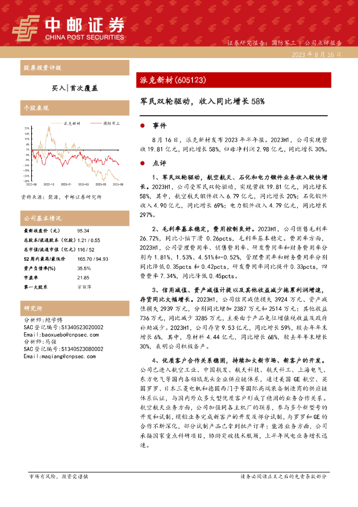 中邮证券:派克新材(605123)-军民双轮驱动,收入同比增长58%.pdf