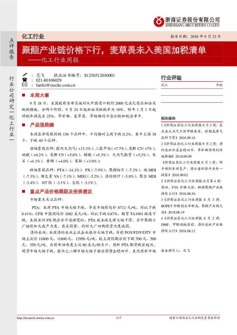 浙商证券:化工行业周报:聚酯产业链价格下行,麦草畏未入美国加税清单.pdf