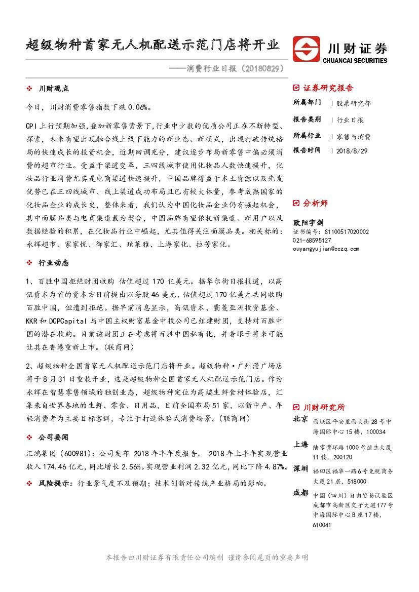 川财证券:消费行业日报:超级物种首家无人机配送示范门店将开业.pdf
