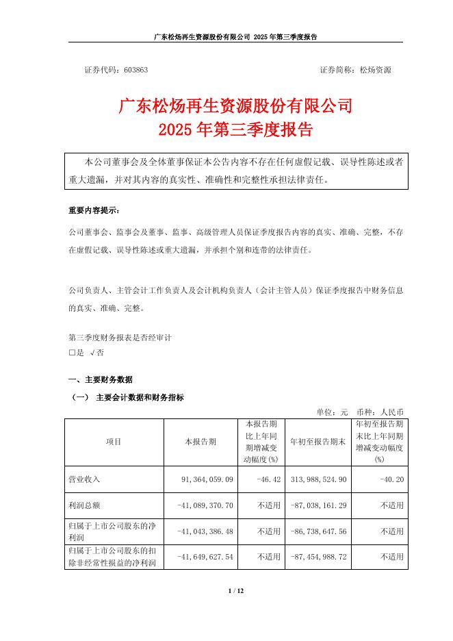 603863-松炀资源:广东松炀再生资源股份有限公司2025年第三季度报告.pdf