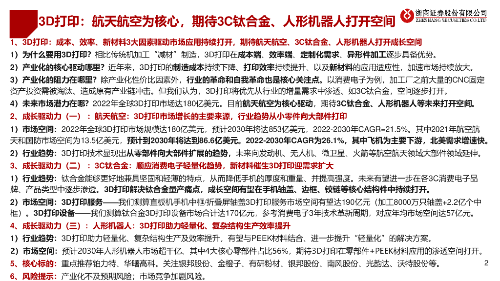 浙商证券:3D打印行业深度研究报告:3D打印:航天航空、3C钛合金、人形机器人打开空间.pdf