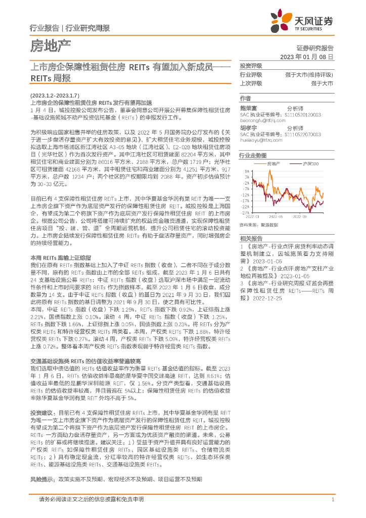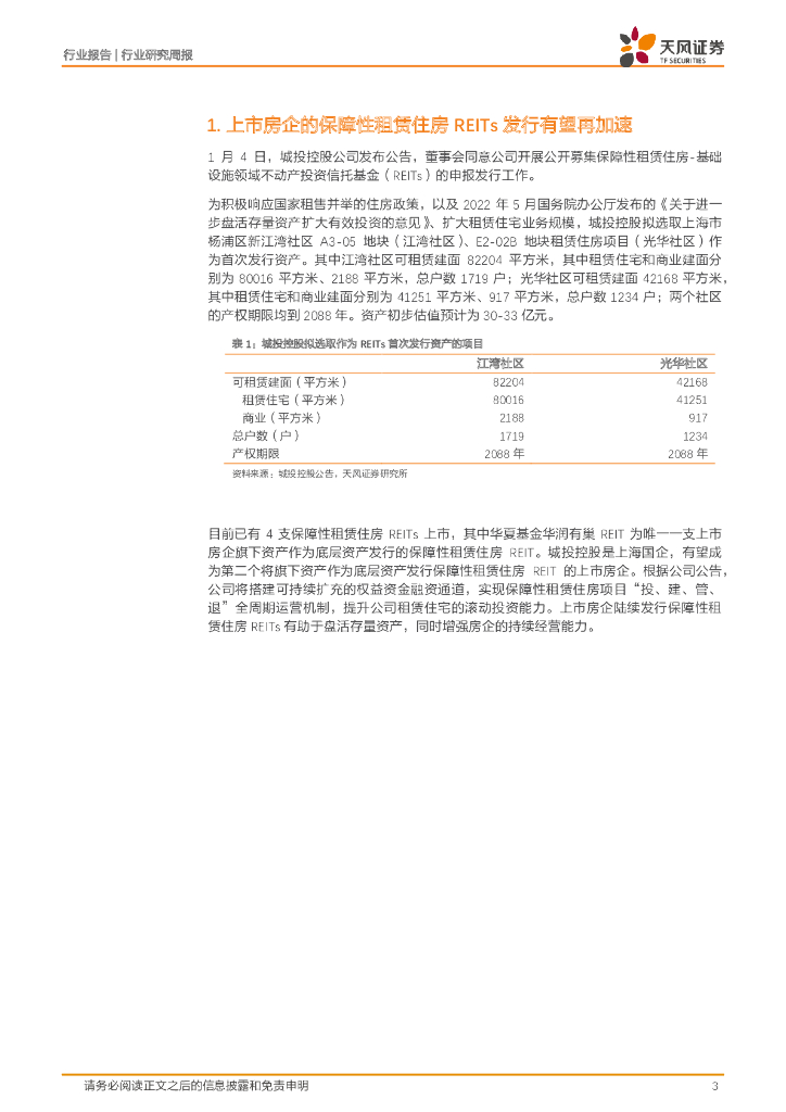 天风证券:房地产REITs周报:上市房企保障性租赁住房REITs有望加入新成员.pdf