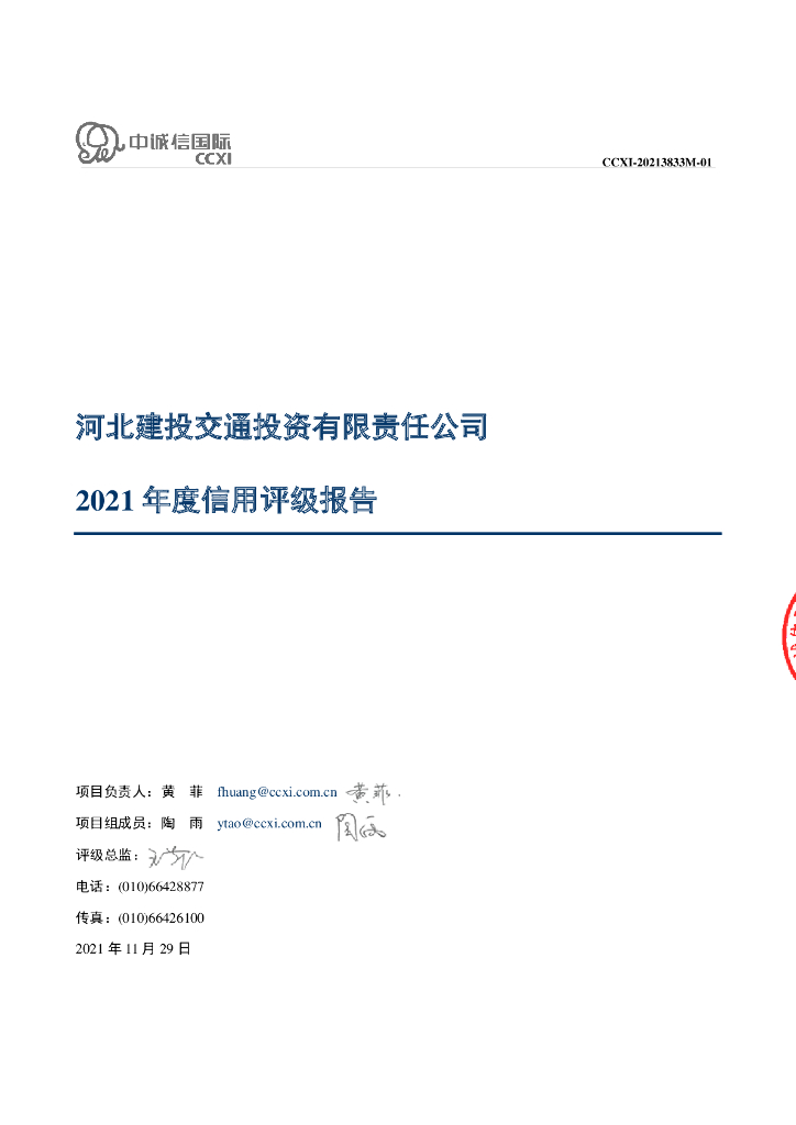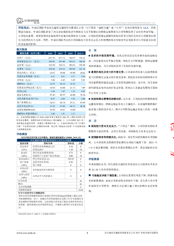 中诚信:河北建投交通投资有限责任公司主体信用评级报告及跟踪评级安排.pdf