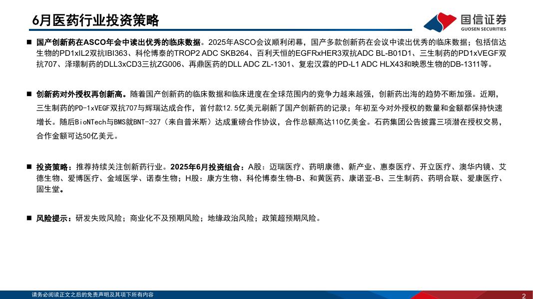 国信证券:医药生物行业2025年6月投资策略:临床与对外合作均取得实质进展,持续关注创新药.pdf
