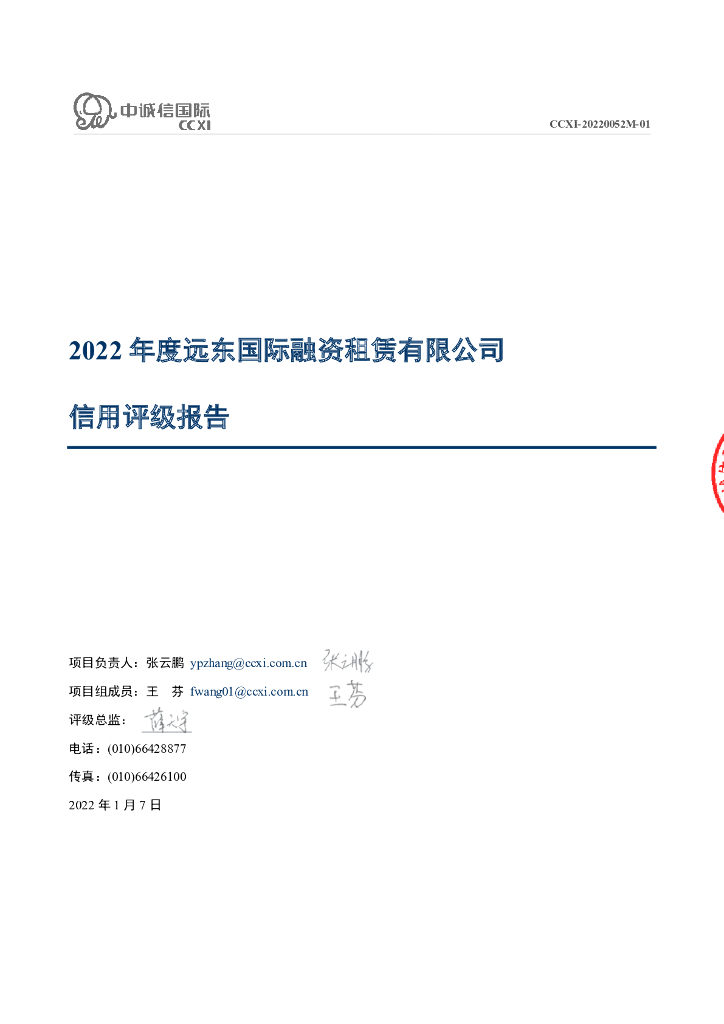 中诚信:远东国际融资租赁有限公司主体信用评级报告及跟踪评级安排.pdf