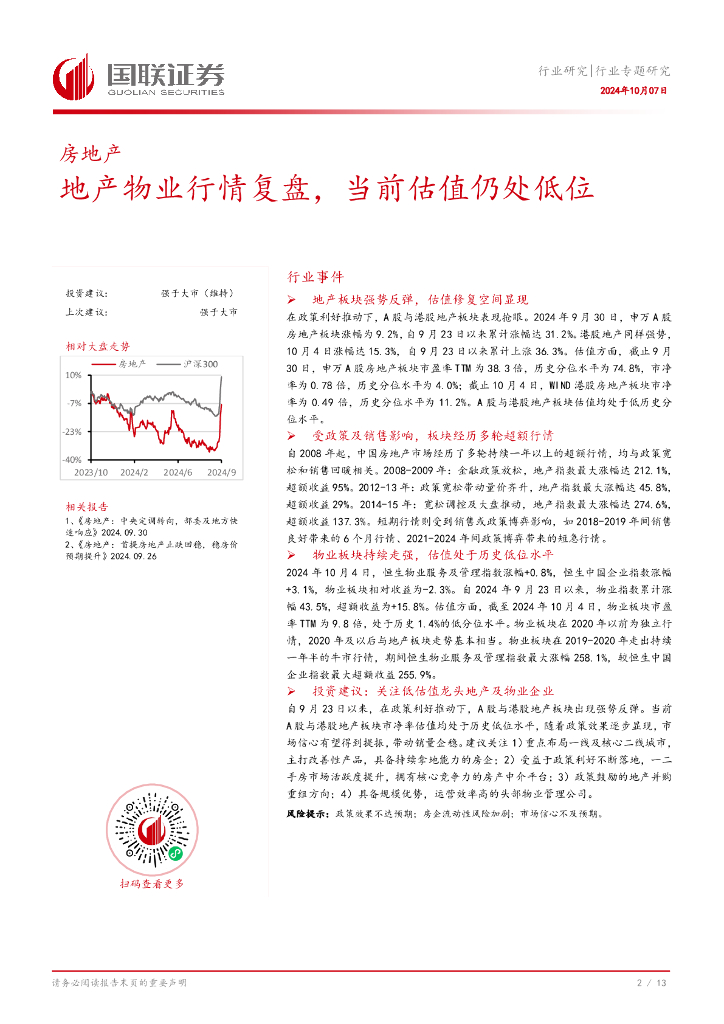国联证券:房地产行业专题研究:地产物业行情复盘,当前估值仍处低位.pdf