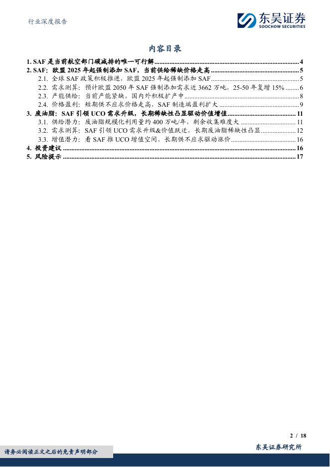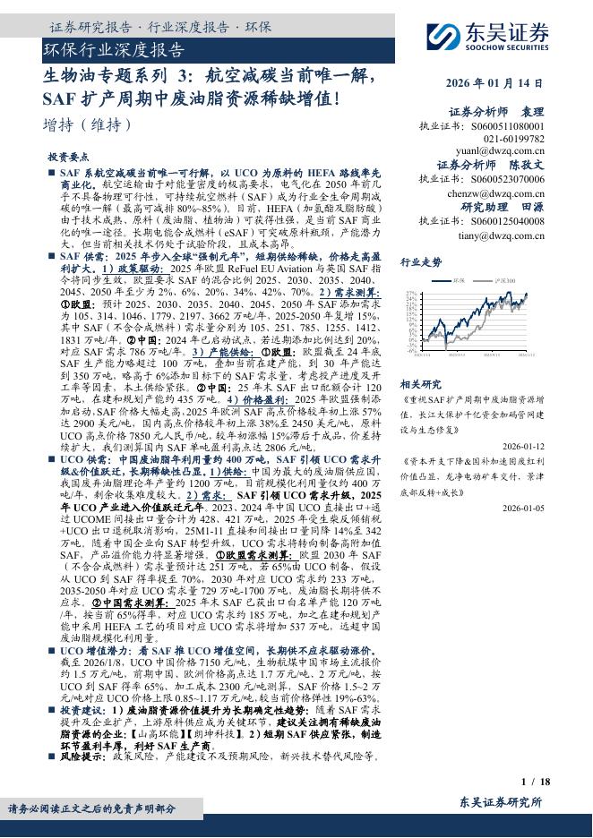 东吴证券:环保行业深度报告:生物油专题系列3:航空减碳当前唯一解,SAF扩产周期中废油脂资源稀缺增值!.pdf