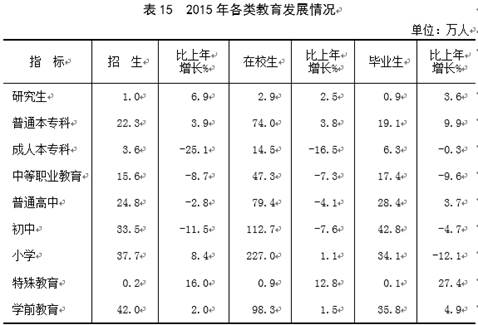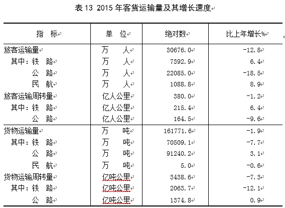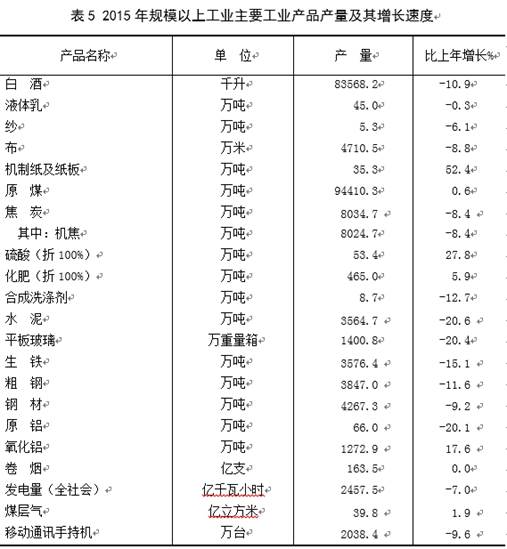 山西省2015年国民经济和社会发展统计公报