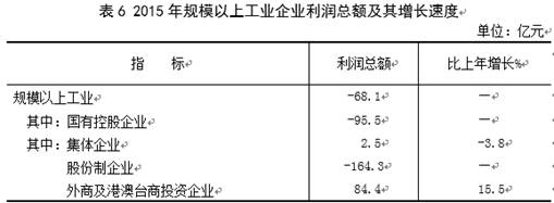 规模以上工业实现利税631.8亿元,下降35.7%;规模以上工业利润盈亏相抵后净亏损68.1亿元,其中,国有控股企业净亏损95.5亿元。