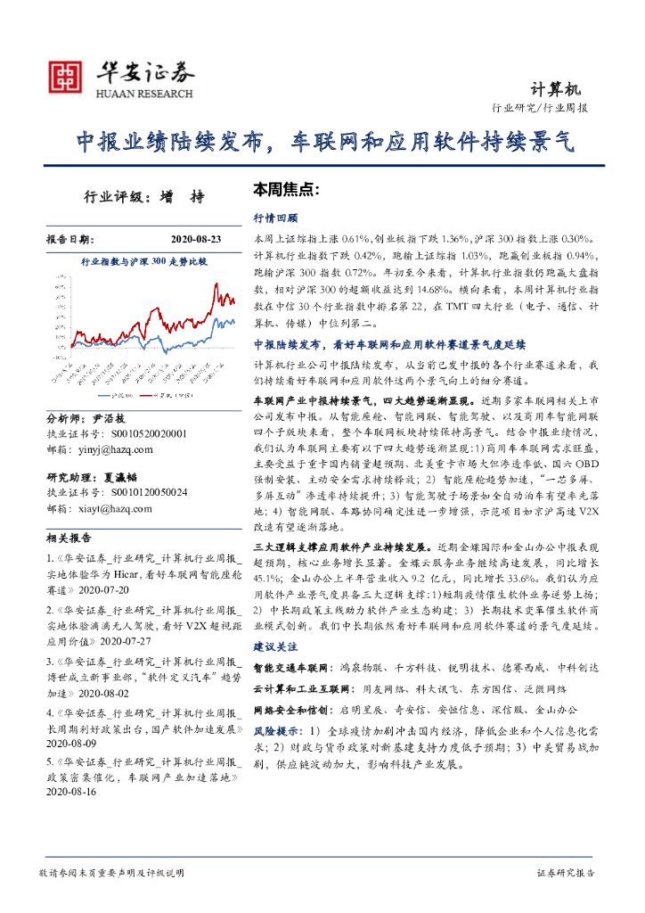 华安证券:计算机行业周报:中报业绩陆续发布,车联网和应用软件持续景气.pdf