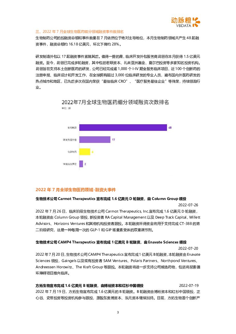 动脉橙:2022年7月全球生物医药投融资月报.pdf