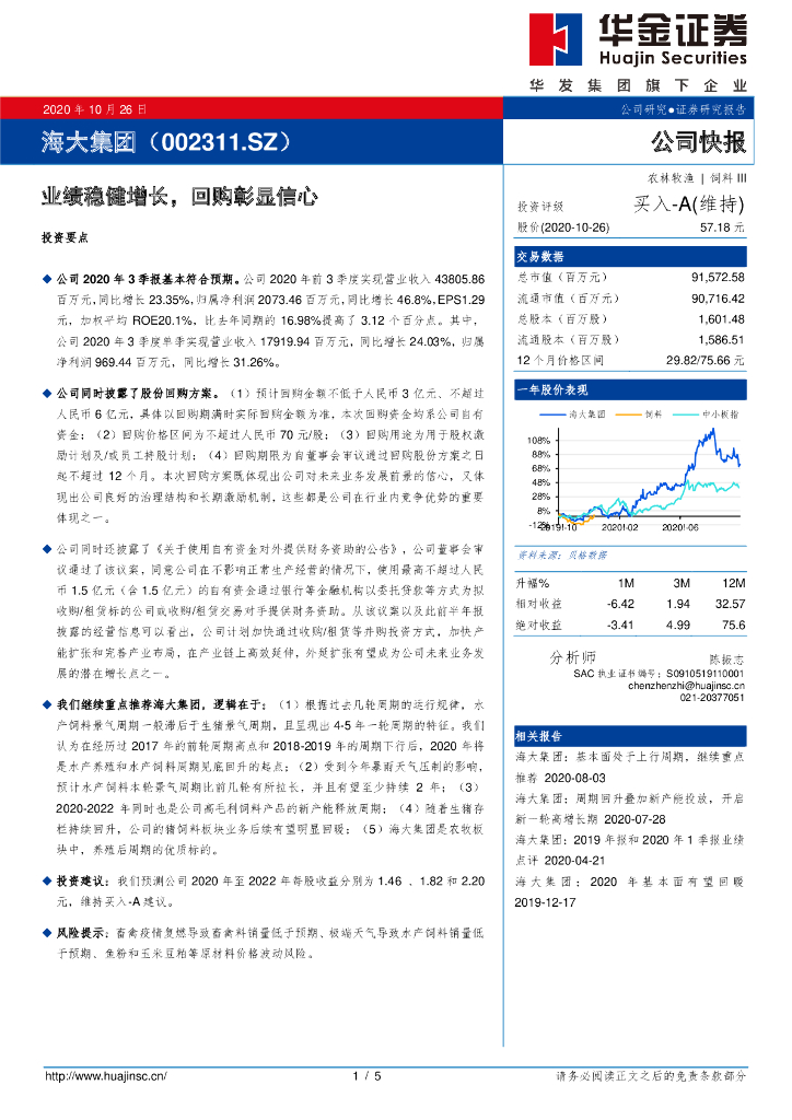 华金证券:海大集团(002311)-业绩稳健增长,回购彰显信心.pdf
