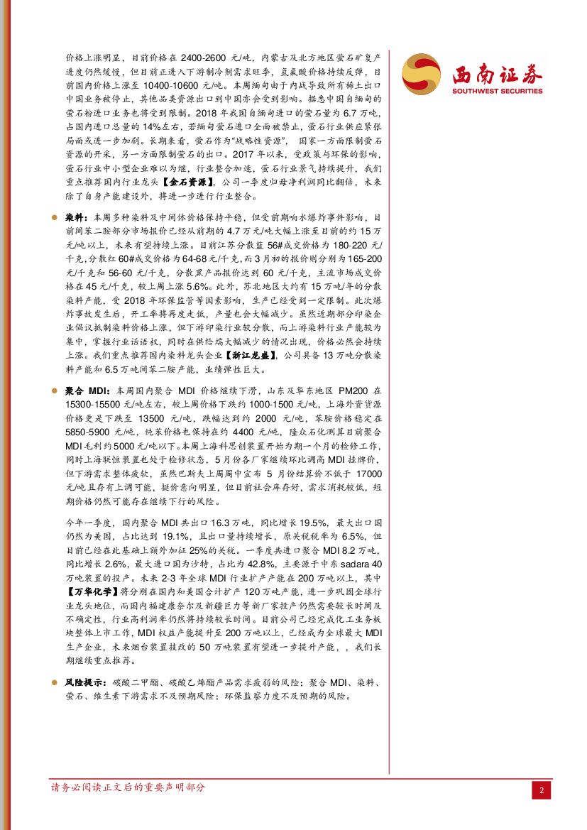 西南证券:化工行业周观点:碳酸乙烯酯报价大幅上涨,行业整合推动VE价格走高.pdf