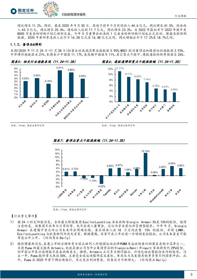 国信证券:纺织服装海外跟踪系列六十六:阿迪达斯品牌三季度收入增长12%,管理层再次上调全年业绩指引