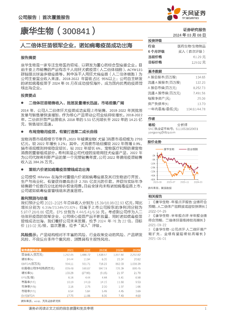 天风证券:康华生物(300841)-人二倍体狂苗领军企业,诺如病毒疫苗成功出海.pdf