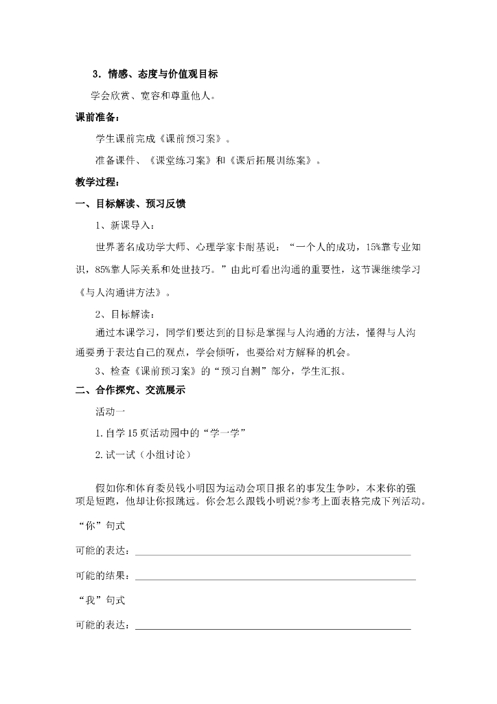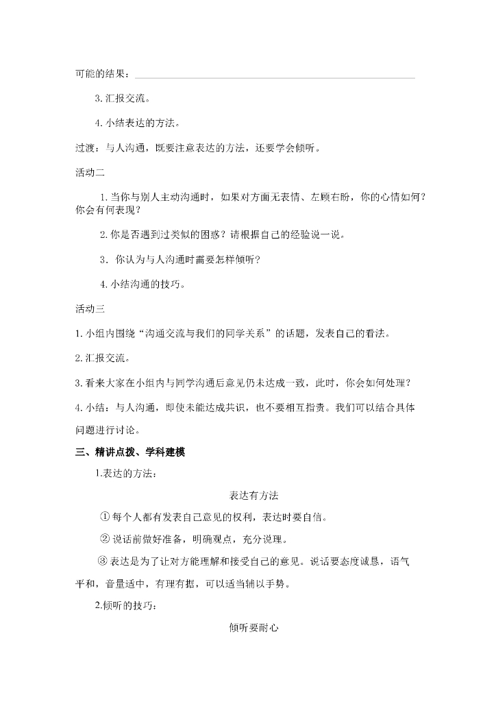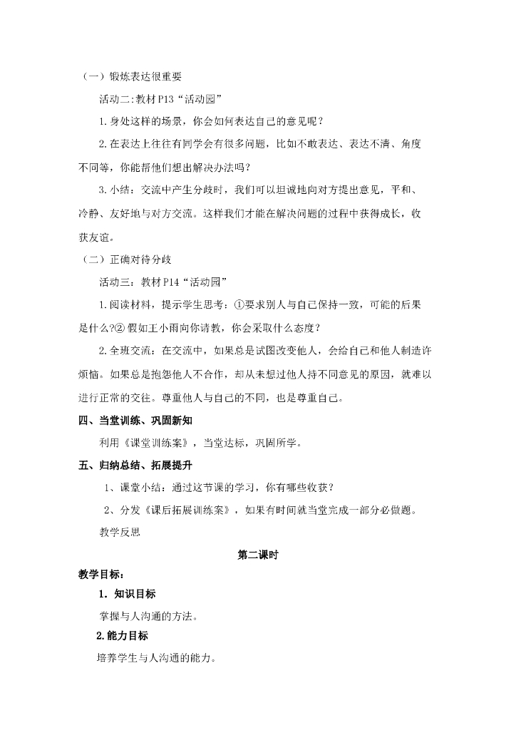 2021五年级上册 人教版小学道德与法治1.2 学会沟通交流 1-2 课时 非表格.doc