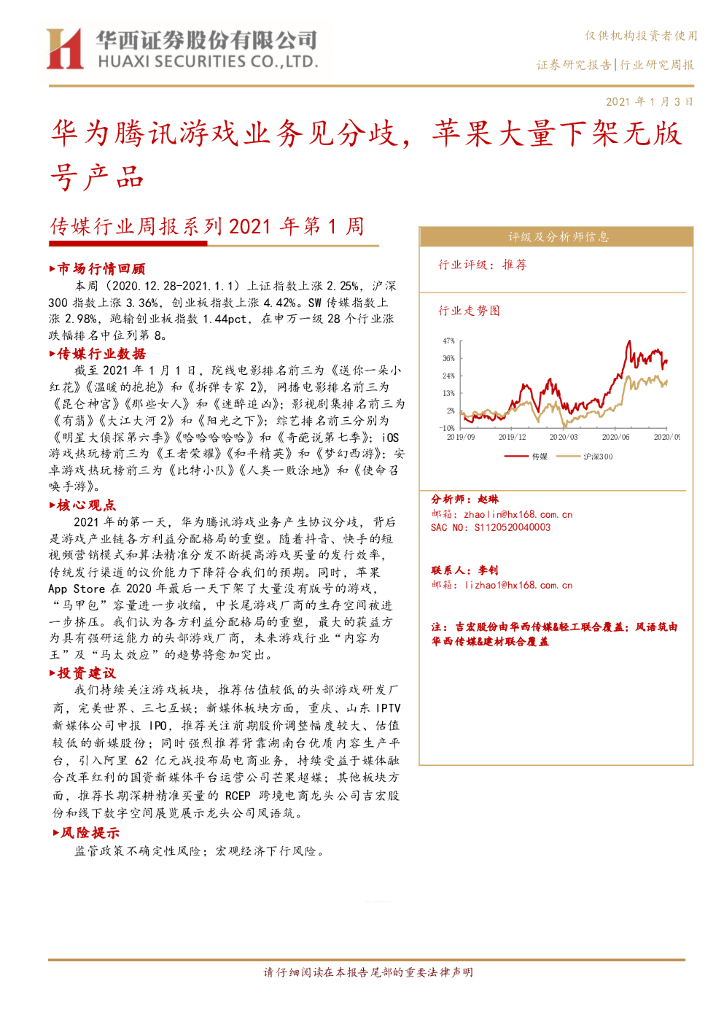 华西证券:传媒行业周报系列2021年第1周:华为腾讯游戏业务见分歧,苹果大量下架无版号产品.pdf