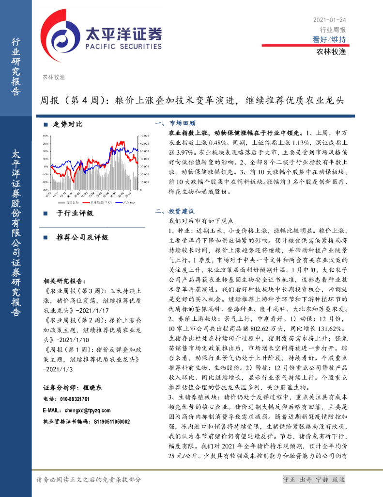 太平洋证券:农林牧渔周报(第4周):粮价上涨叠加技术变革演进,继续推荐优质农业龙头.pdf