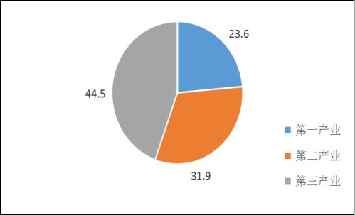 根据盟市生产总值统一核算结果,全年地区生产总值(GDP)完成1411.44亿元,按可比价格计算,比上年增长4.0%。其中,第一产业增加值333.34亿元,增长4.3%;第二产业增加值449.91亿元,增长0.1%;第三产业增加值628.18亿元,增长6.3%。三次产业比例为23.6:31.9:44.5。人均地区生产总值达到49346元,比上年增长4.9%。