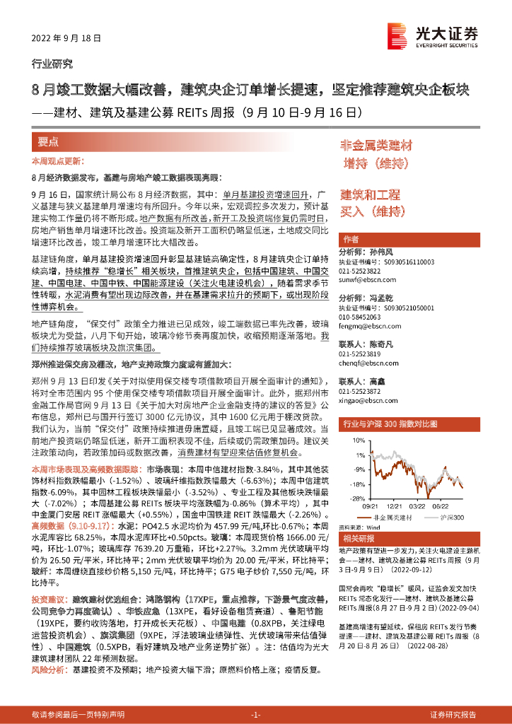 光大证券:建材、建筑及基建公募REITs周报:8月竣工数据大幅改善,建筑央企订单增长提速,坚定推荐建筑央企板块.pdf