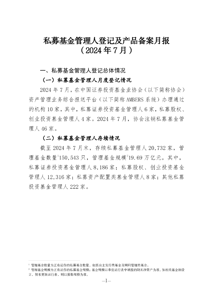 中国证券投资基金业协会:私募基金管理人登记及私募基金产品备案月报(2024年第7期).pdf