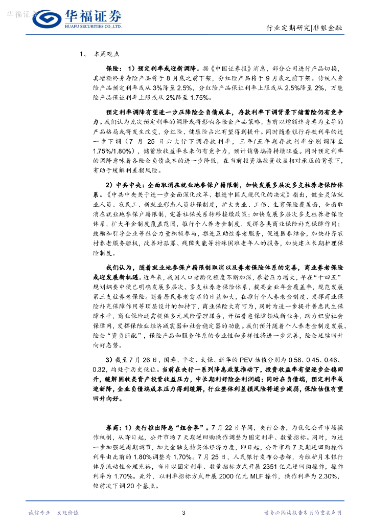 华福证券:非银金融行业周报:央行推出降息“组合拳”,预定利率或迎新调降.pdf