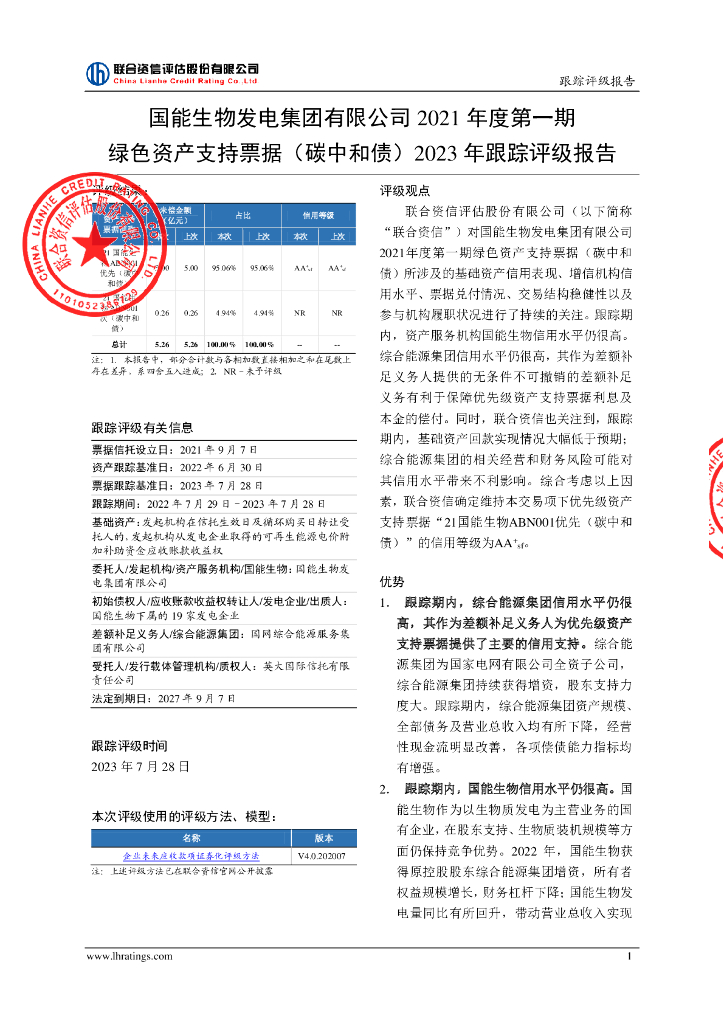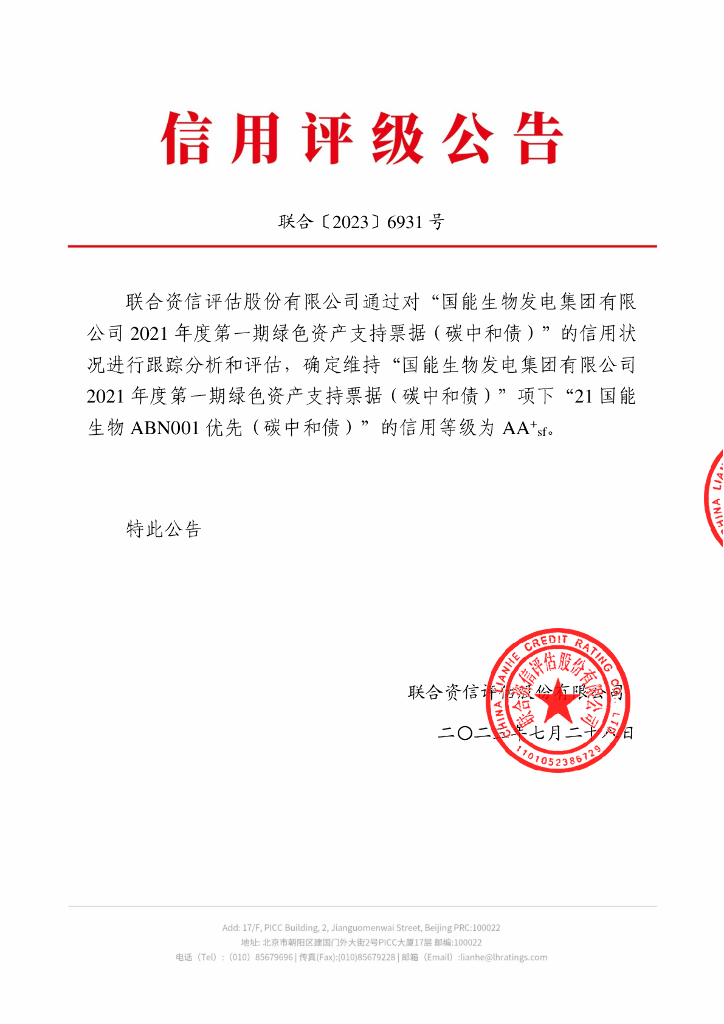 联合资信:国能生物发电集团有限公司2021年度第一期绿色资产支持票据(碳中和债)2023年跟踪评级报告.pdf