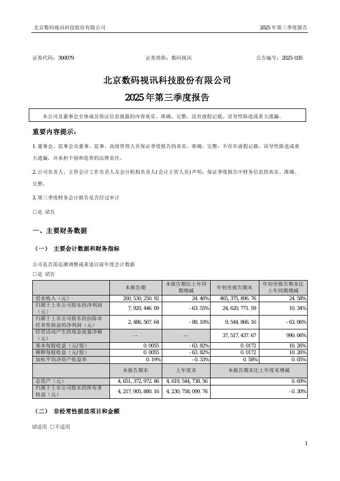 300079-数码视讯:2025年三季度报告.pdf