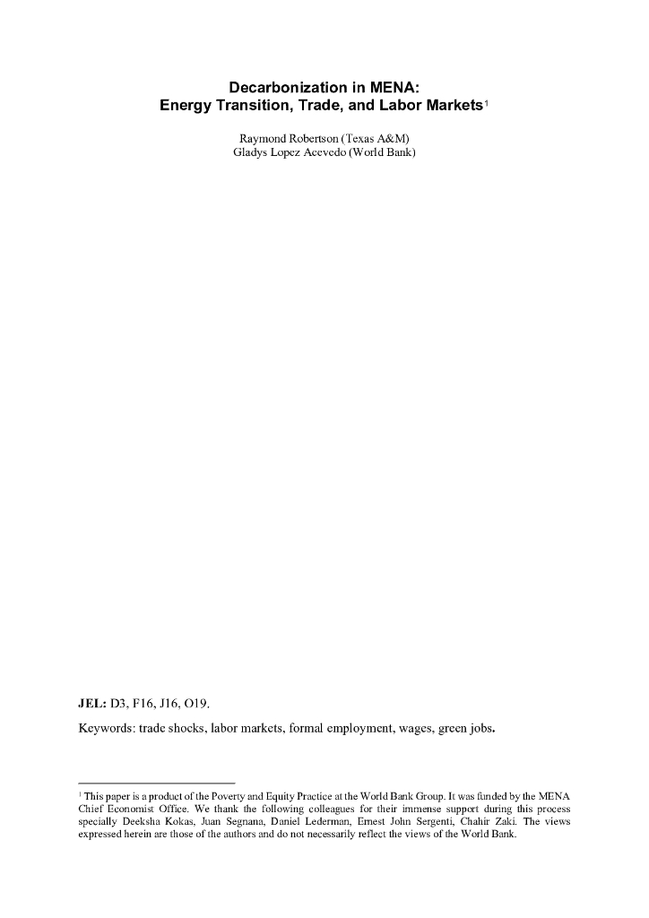世界银行:中东和北非地区的脱碳:能源转型、贸易和劳动力市场(英文版).pdf