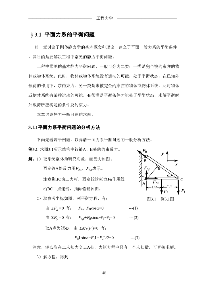 《工程力学》电子教材-第一节 平面力系的平衡问题.pdf