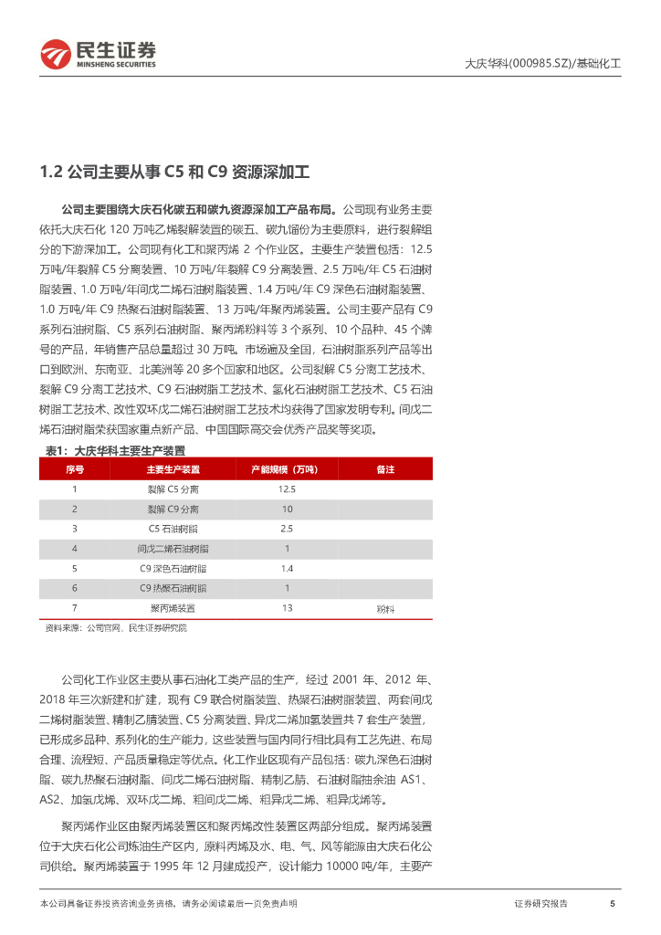 民生证券:大庆华科(000985)-首次覆盖报告:聚焦碳五和碳九深加工,应对变局攻守兼备.pdf