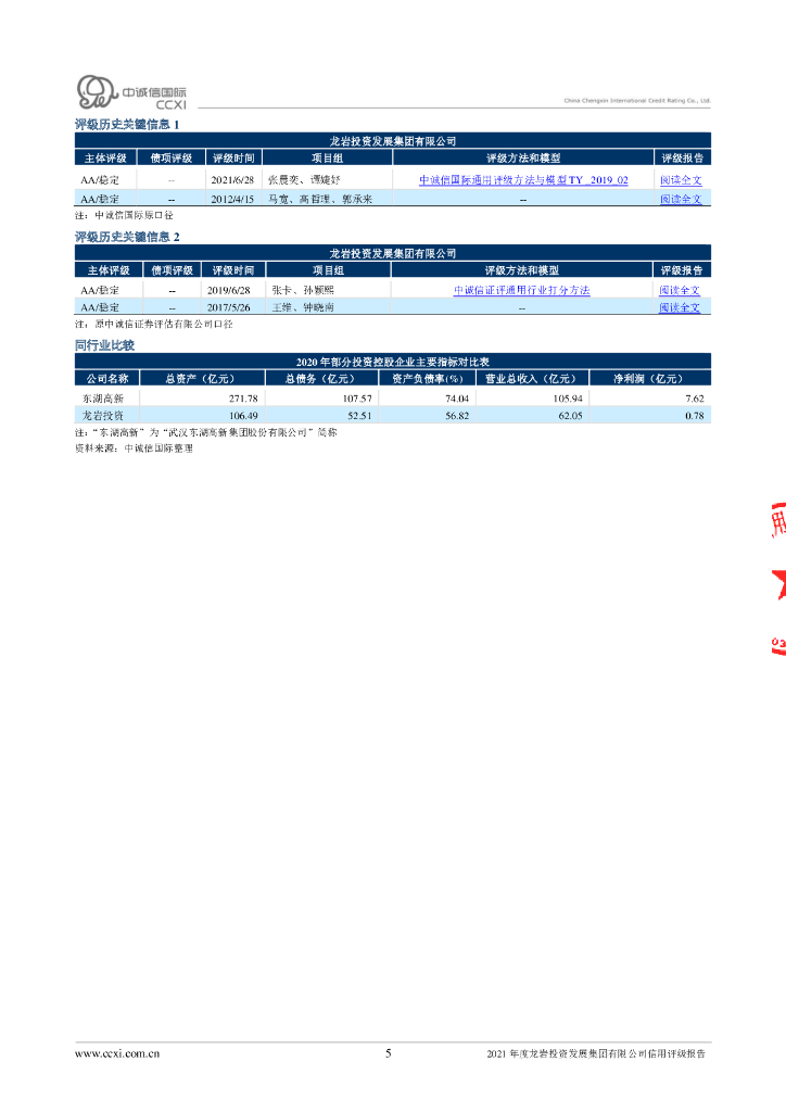 中诚信:龙岩投资发展集团有限公司主体信用评级报告及跟踪评级安排.pdf