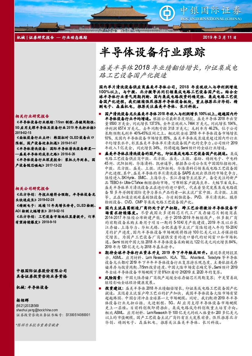 中银国际:半导体设备行业跟踪:盛美半导体2018年业绩翻倍增长,印证集成电路工艺设备国产化提速.pdf