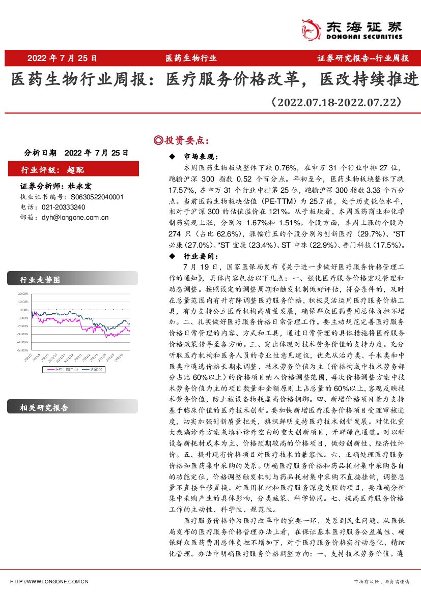 东海证券:医药生物行业周报: 医疗服务价格改革,医改持续推进.pdf