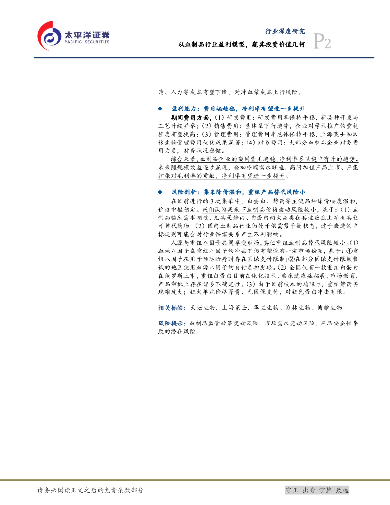 太平洋证券:生物医药Ⅱ行业深度研究:以血制品行业盈利模型,窥其投资价值几何.pdf
