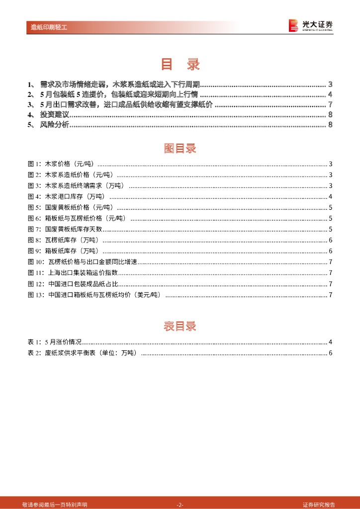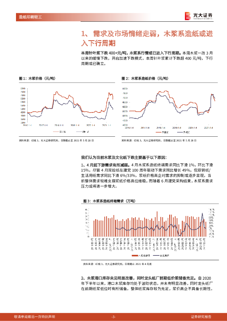 光大证券:造纸行业周报:木浆系或进入下行周期,包装纸5连提价有望迎来短期向上行情.pdf