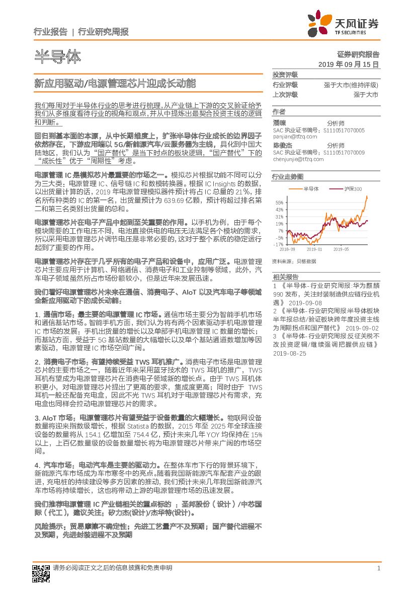 天风证券:半导体行业研究周报:新应用驱动/电源管理芯片迎成长动能.pdf