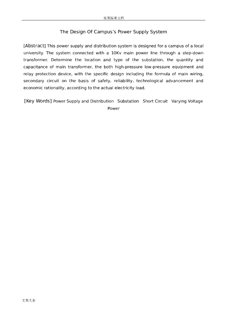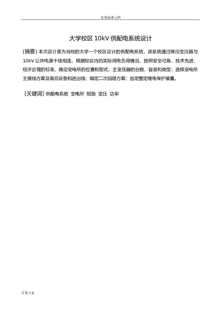 大学校区10kV供配电系统毕业设计说明书.doc